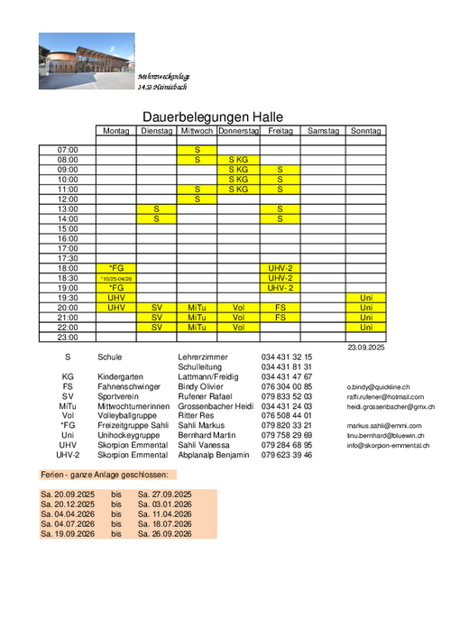 Hier finden Sie die Belegungen und die freien Zeiten der MZA Heimisbach.
