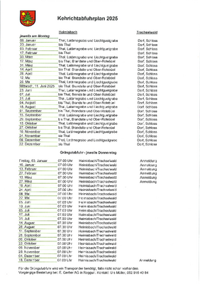 Kehricht- und Grüngutabfuhrplan 2025